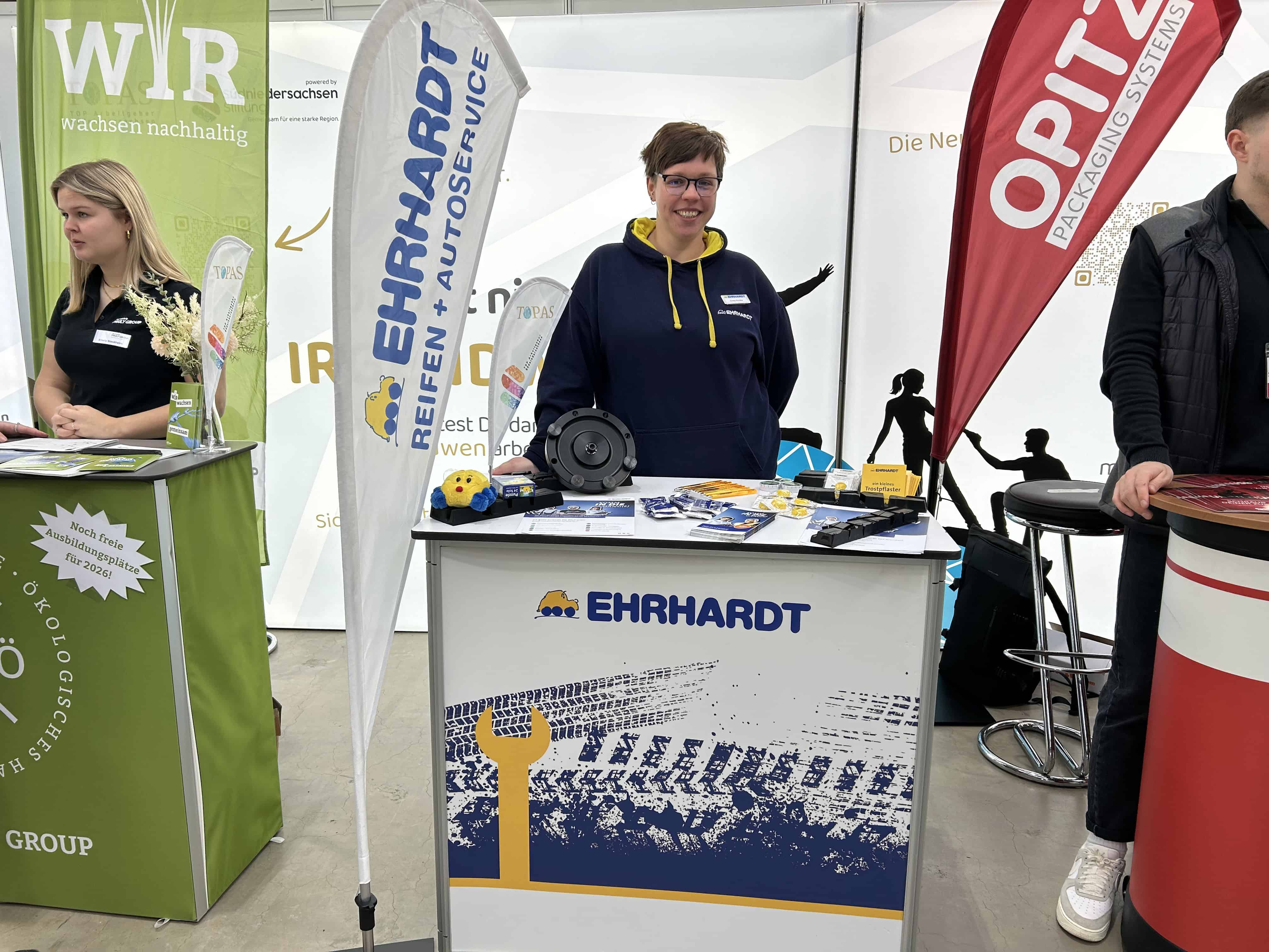 Am TOPAS-Stand präsentierten sich der Landkreis Northeim, ottobock SE & Co. KG, OPITZ Packaging Systems GmbH, THE PAULY GROUP GmbH & Co. KG, Ehrhardt Reifen + Autoservice GmbH & Co. KG sowie die Kreis-Sparkasse Northeim. Nicklas Opitz von OPITZ Packaging Systems GmbH betonte, man sei gerne Teil des gemeinsamen Auftritts, um als Mitglied eines starken Netzwerks sichtbar zu werden. Ausbildung habe einen hohen Stellenwert, weil so die Fachkräfte von morgen in Südniedersachsen qualifiziert werden.
