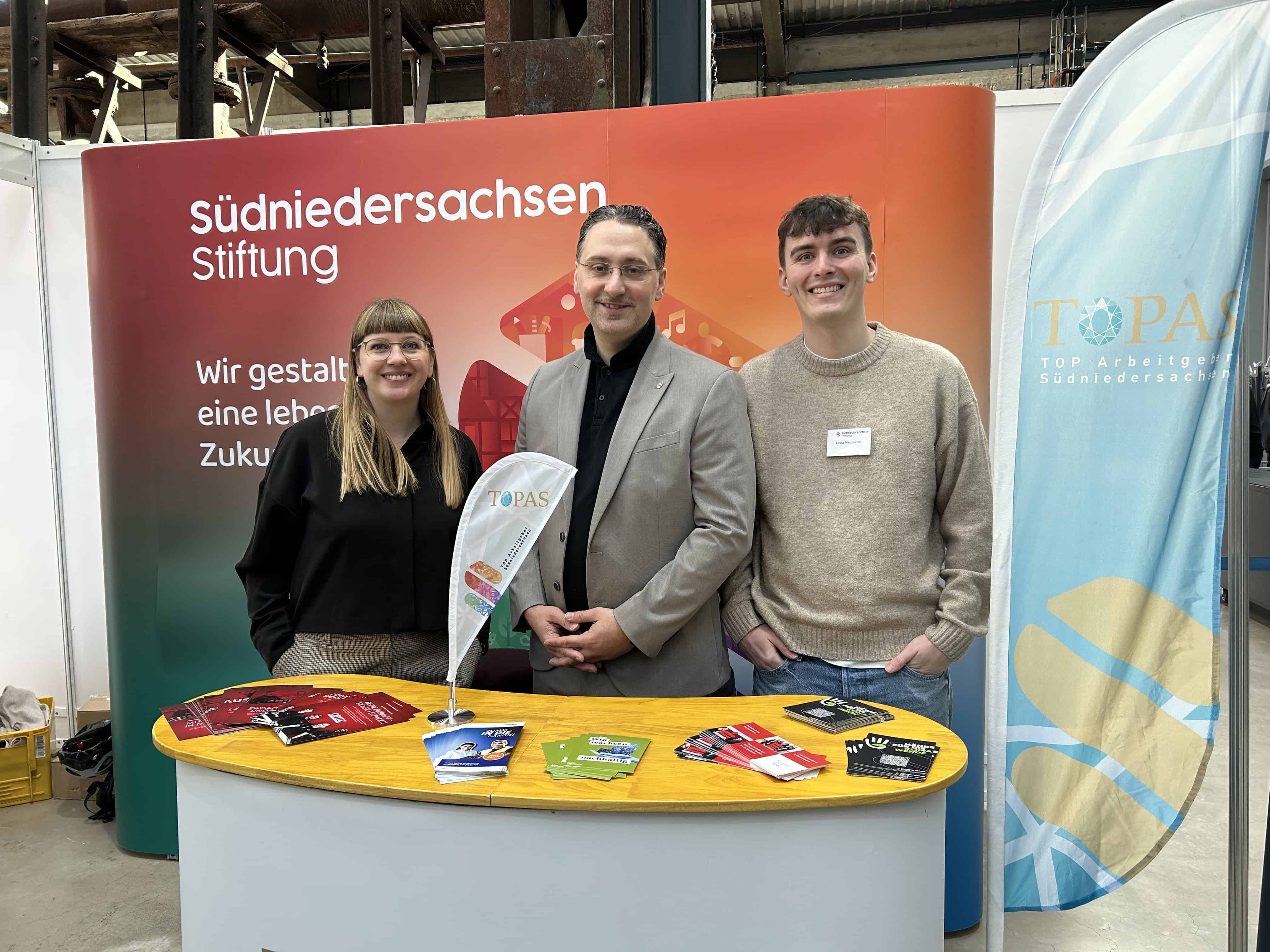 Neben zahlreichen renommierten Unternehmen aus der Region Südniedersachsen war erstmals unter den Teilnehmenden auch ein Gemeinschaftsstand von „TOPAS – TOP Arbeitgeber Südniedersachsen“ der SüdniedersachsenStiftung vertreten. Sechs regionale Unternehmen und Institutionen traten dort gemeinsam auf, um Ausbildungsmöglichkeiten sichtbar zu machen und mit potenziellen Bewerberinnen und Bewerbern ins Gespräch zu kommen. TOPAS zeichnet Arbeitgeber aus, die sich in der Region als besonders gute Arbeitgeber bewährt haben.
