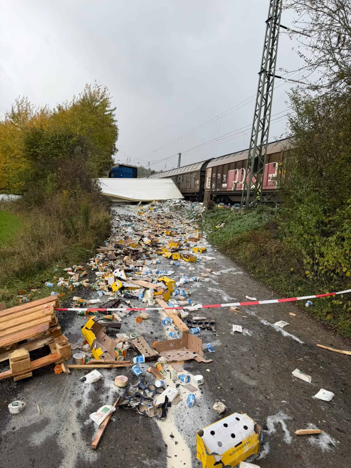 Sowohl der Lkw-Fahrer als auch der 51-jährige Lokführer erlitten leichte Verletzungen und wurden durch den Rettungsdienst in ein Krankenhaus in Hann. Münden gebracht. Infolge der Kollision verteilten sich weite Teile der geladenen Milch- und Käseprodukte großflächig an der Unfallstelle.