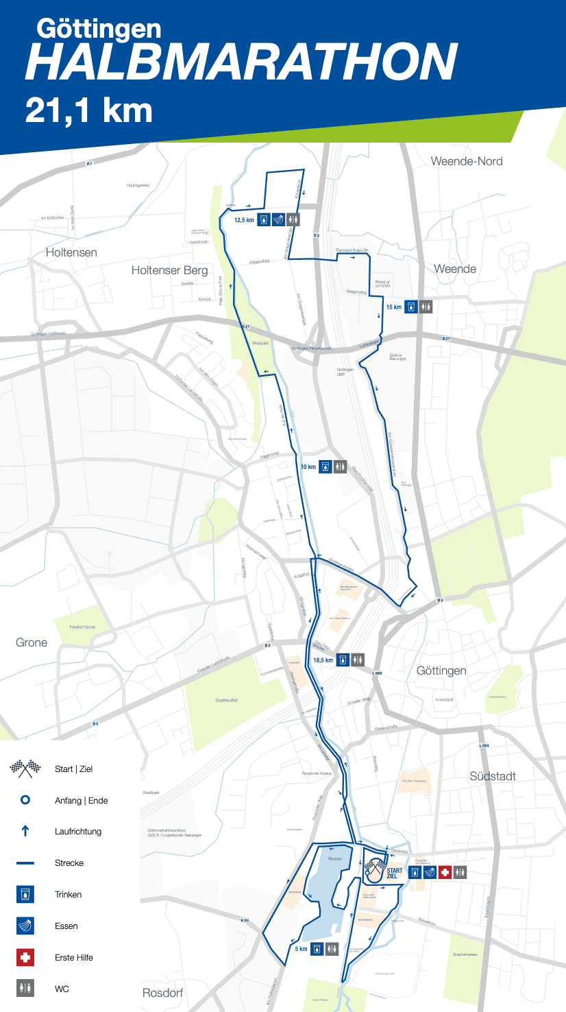 Die neue Route vereint ruhige Naturpassagen mit dynamischen Straßenlaufabschnitten durch das Stadtgebiet und ist erstmals überwiegend als Rundlauf angelegt: Der Startschuss fällt im Jahnstadion, führt über das idyllische Kiesseeareal, entlang des Leineradwegs ins Leinetal und weiter bis zum Lutteranger. Über das Güterverkehrszentrum und die Godehardstraße geht es schließlich zurück ins Stadion.