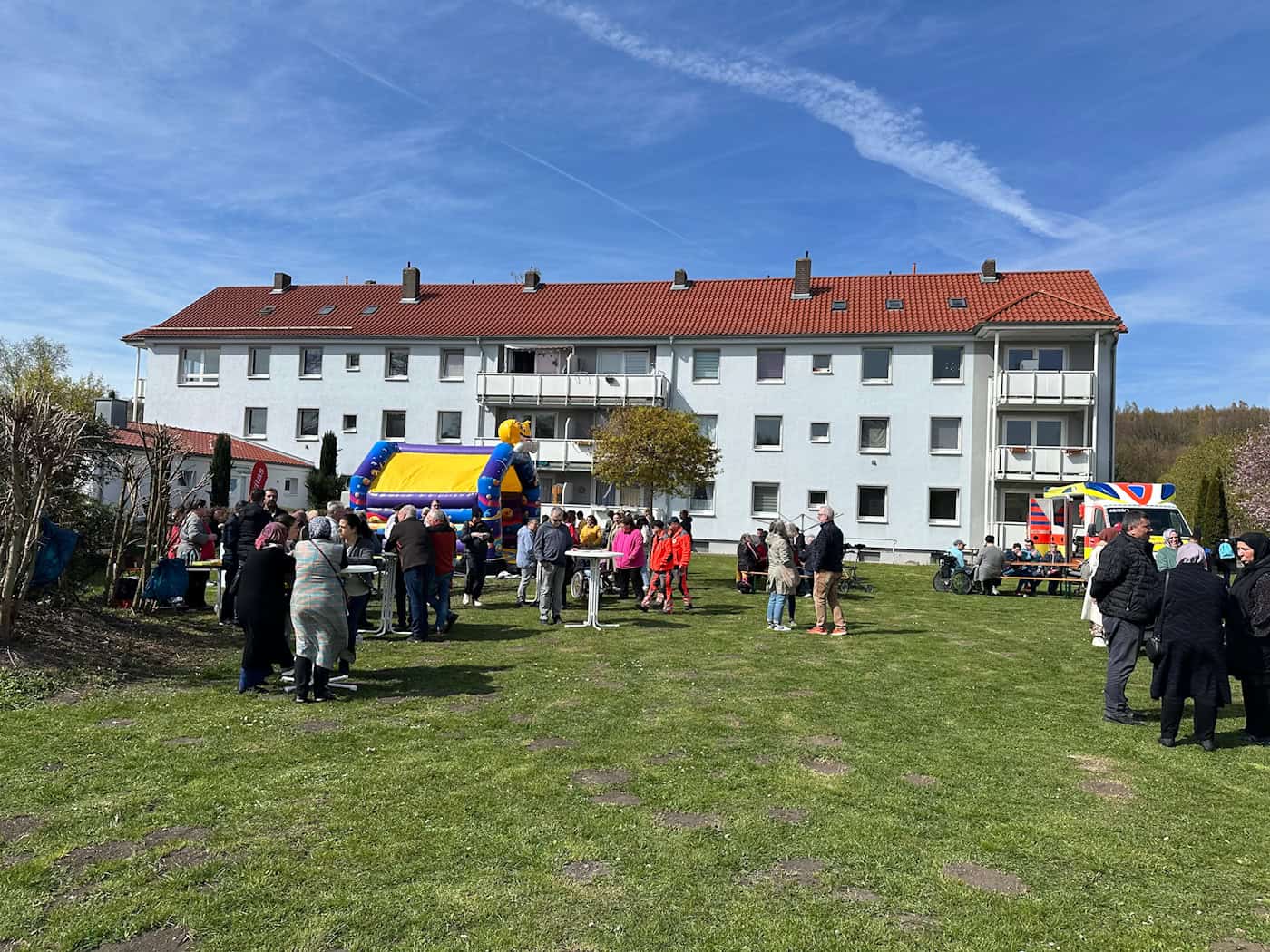 Herzberg am Harz. Bei warmen Temperaturen und zeitweise Sonnenschein hatten alle Generationen viel Freude bei einem Frühlingsfest Mitte April auf der Wiese am Kastanienplatz in Herzberg. Rund 300 Gäste waren der Einladung gefolgt, darunter auch Bürgermeister Christopher Wagner. Organisiert wurde das Fest vom Gemeinwesenprojekt „Miteinander in HERZ-Aue“ der Caritas Südniedersachsen in Zusammenarbeit mit der Kreiswohnbau Osterode am Harz/Göttingen und der Stadt Herzberg am Harz.