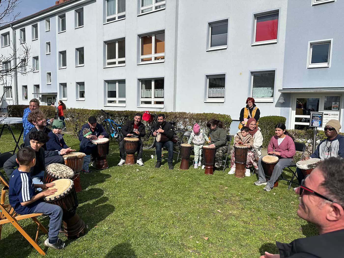 Beim Trommel-Workshop kam es darauf an, den Rhythmus zu halten. Fotocredit: Jannika Born / Caritas
